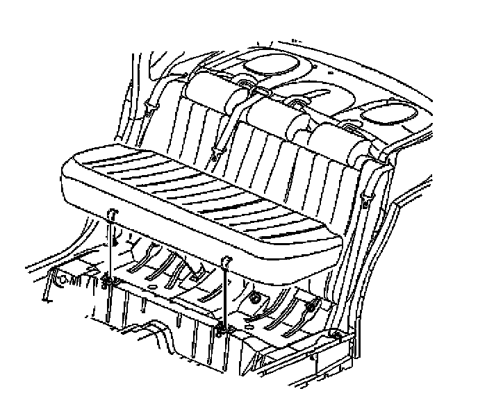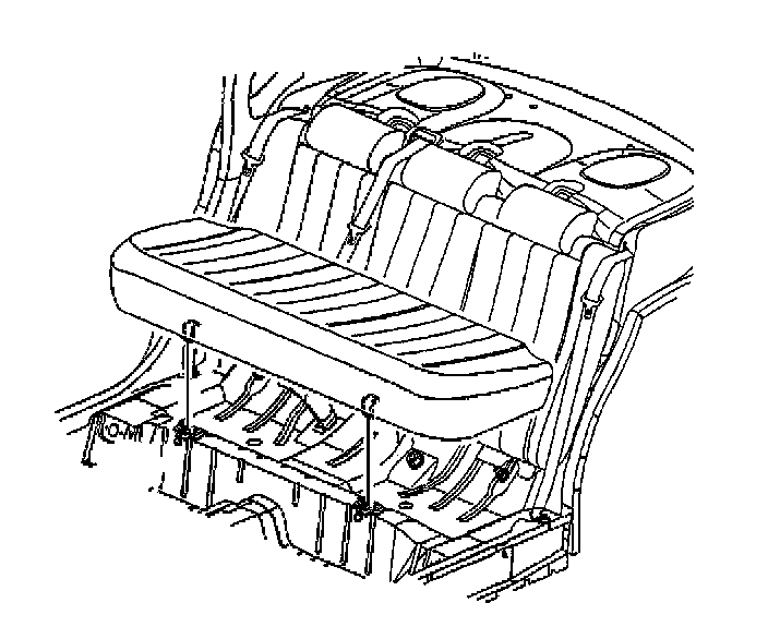 Remove the rear seat cushion by lifting up and pulling out of the retainer. If the retainer comes out with the cushion, remove the retainer and press the retainer back into the floor pan.