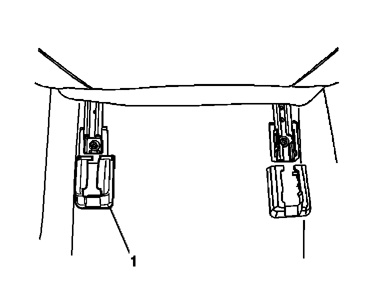 1. For the power seat, to install the covers (1) spread the arms and push forward onto the rear end of the seat adjuster track.