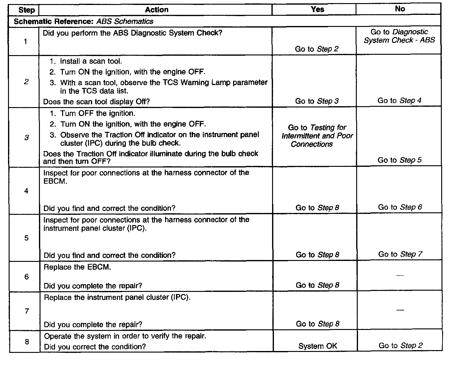 The numbers below refer to the step numbers on the diagnostic table.