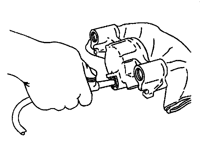 Caution: Do not place fingers in front of the caliper piston(s) in an attempt to catch or protect it when applying compressed air. The piston(s) can fly out with force and could result in serious bodily injury.