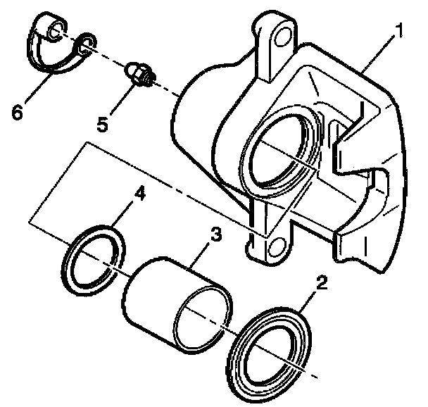4. Using a small wooden or plastic tool, remove the piston seal (4) from the caliper bore and discard the piston seal.