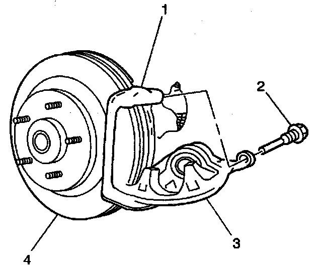 4. Swing the caliper (3) upward in position around the pads.