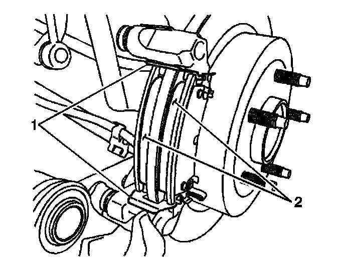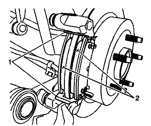 3. Install the pads (2) to the caliper bracket.