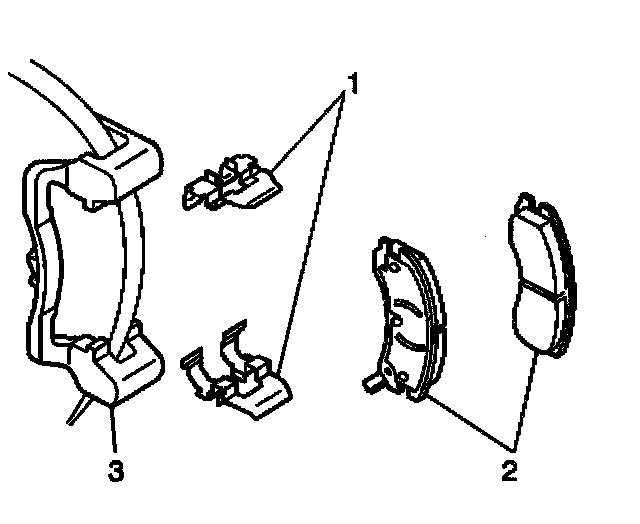3. Remove the brake pad retainers (1) from the brake caliper bracket.
