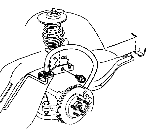 3. With the weight of the vehicle on the suspension, install the brake hose into the bracket.