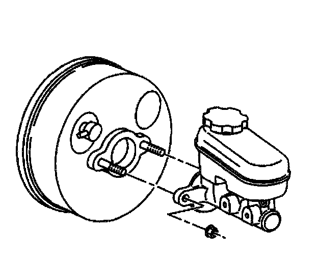 2. If you are performing repairs on a 3.4L, non ABS Impala, it is necessary to remove the bracket (1) from the master cylinder.