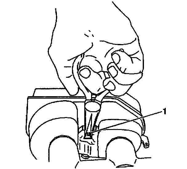 3. Remove the brake fluid level sensor. Using needle nose pliers, carefully depress the retaining tabs on the end of the brake fluid level sensor (1) and press the sensor through the reservoir to remove.