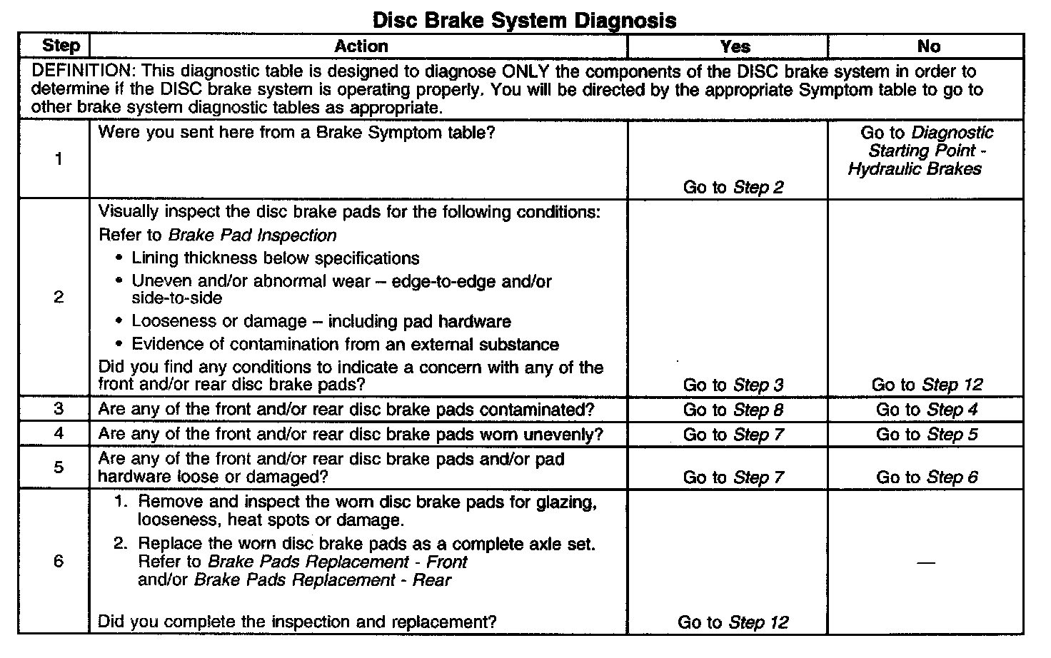 Disc Brake System DiagnosisSteps 1 - 6