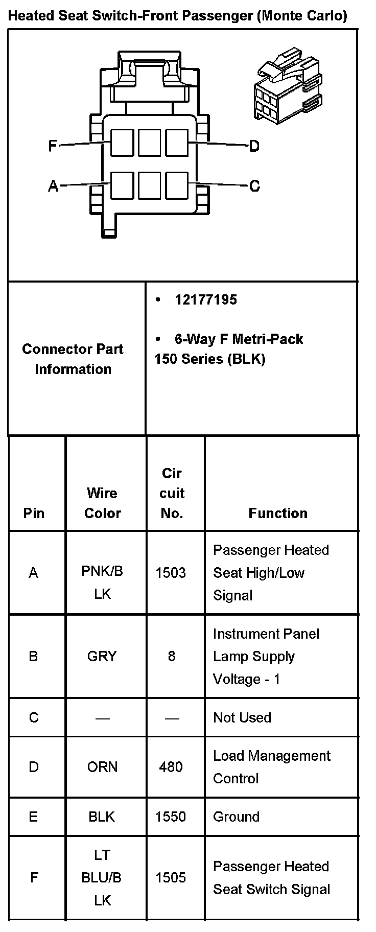 Heated Seat Switch-Front Passenger: