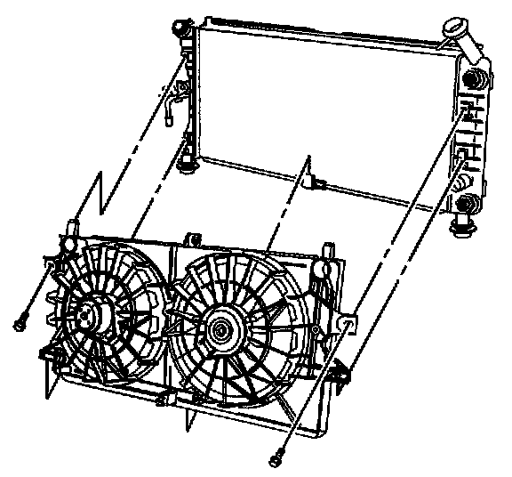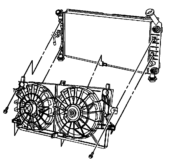 Important: Ensure the lower edge of the fan shroud engages the clip at the bottom of the radiator.