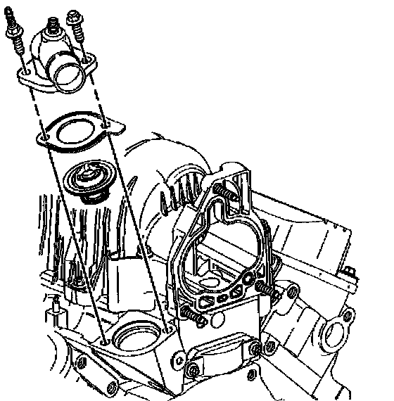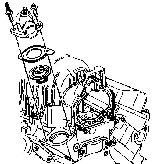 2. Install the gasket and the water outlet housing.