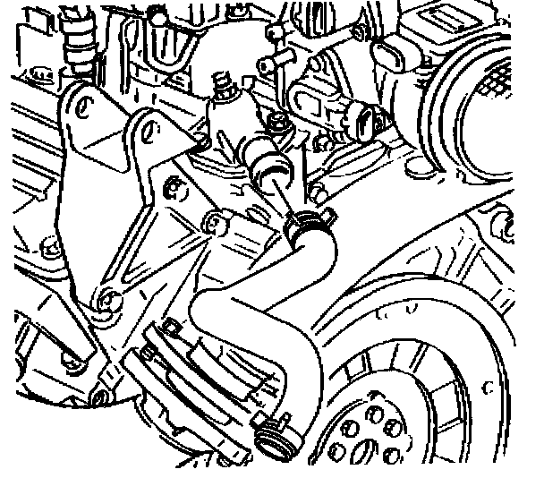 5. Remove the water outlet housing bolt and the stud.