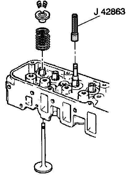 5. Use J 42863 to push the valve stem oil seal over the valve guide.