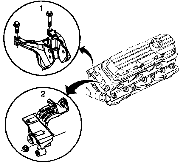 5. Install the engine mount strut bracket and nuts (2), if applicable.