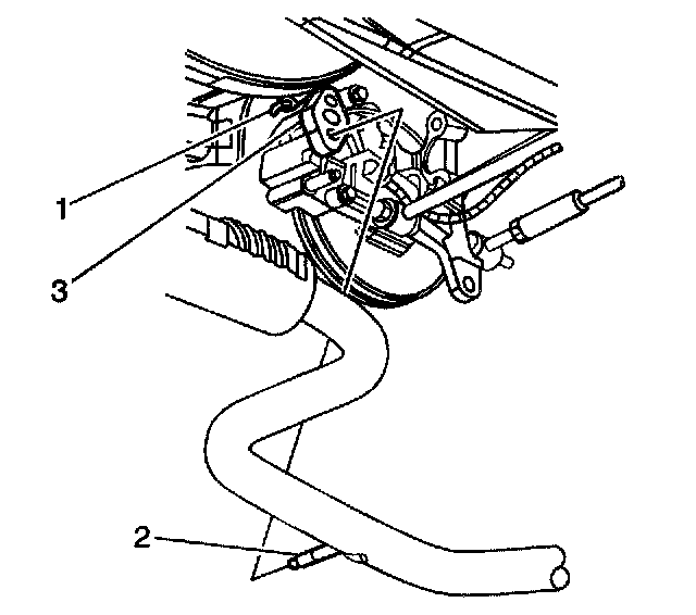 3. Remove the exhaust pipe hanger (3) from the exhaust pipe (2) and the exhaust hanger bracket (1).