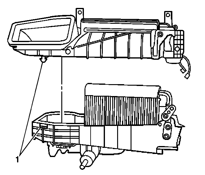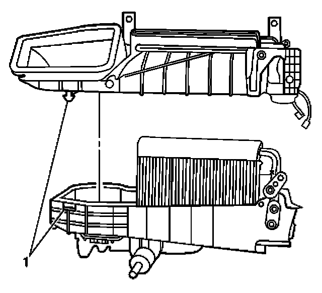12. Separate the HVAC module assembly case (1).