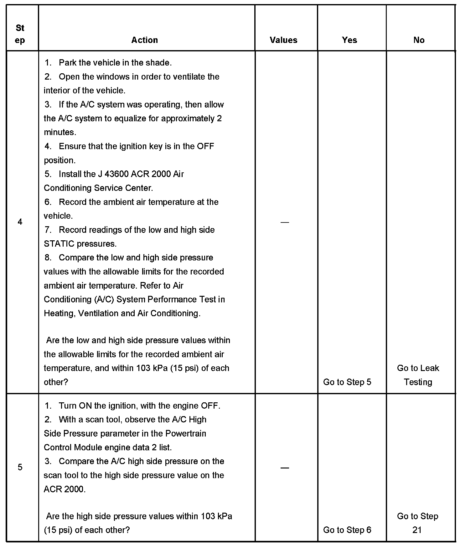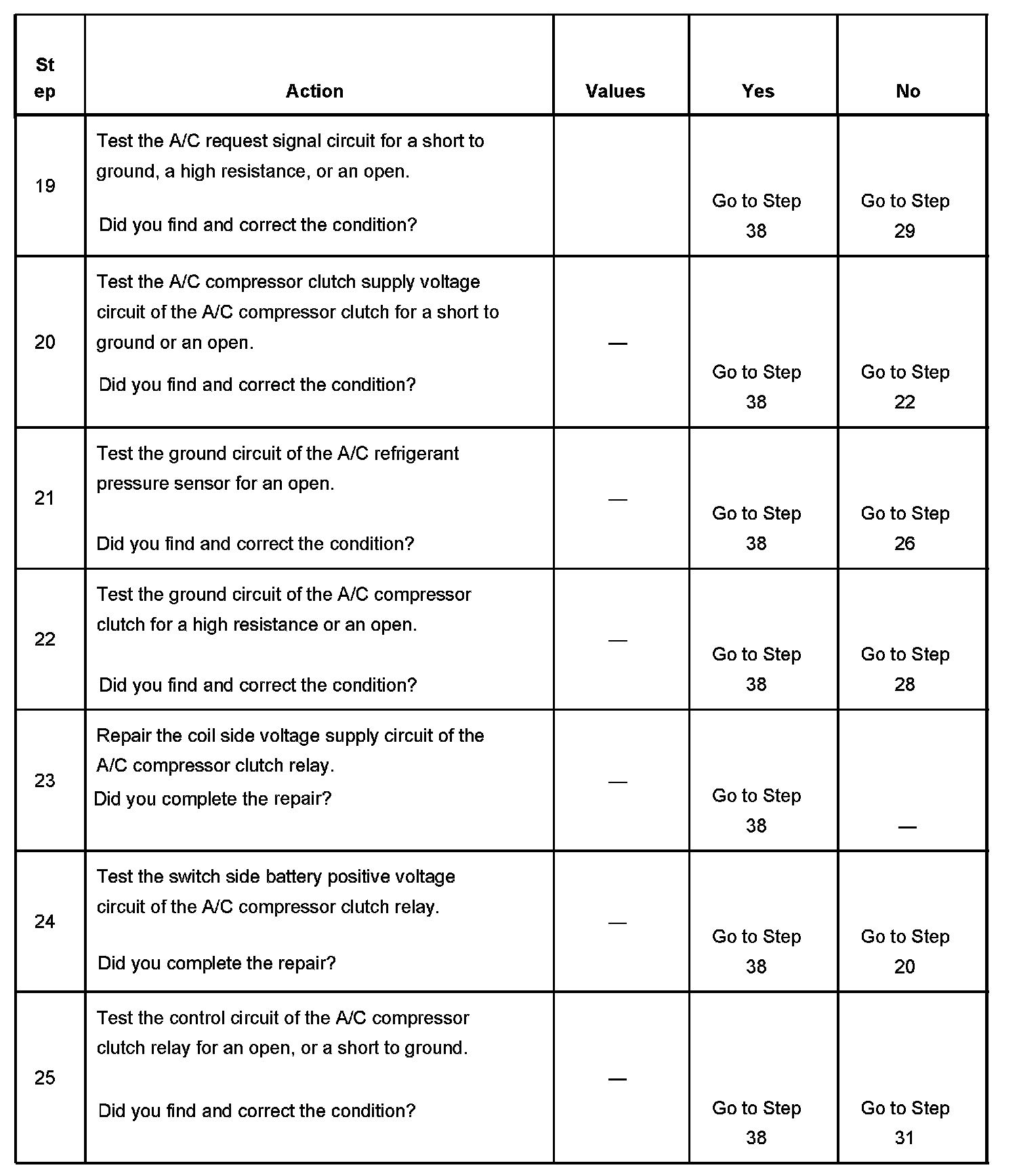 The numbers below refer to the step numbers on the diagnostic table.