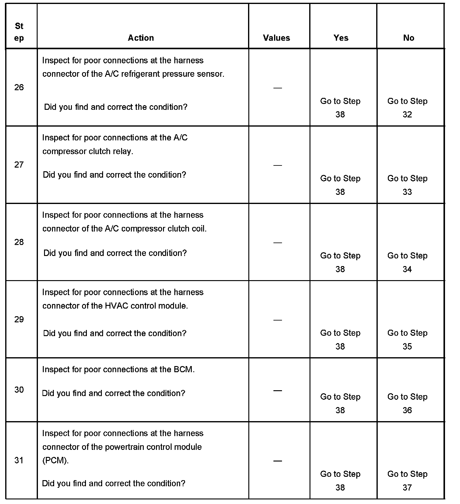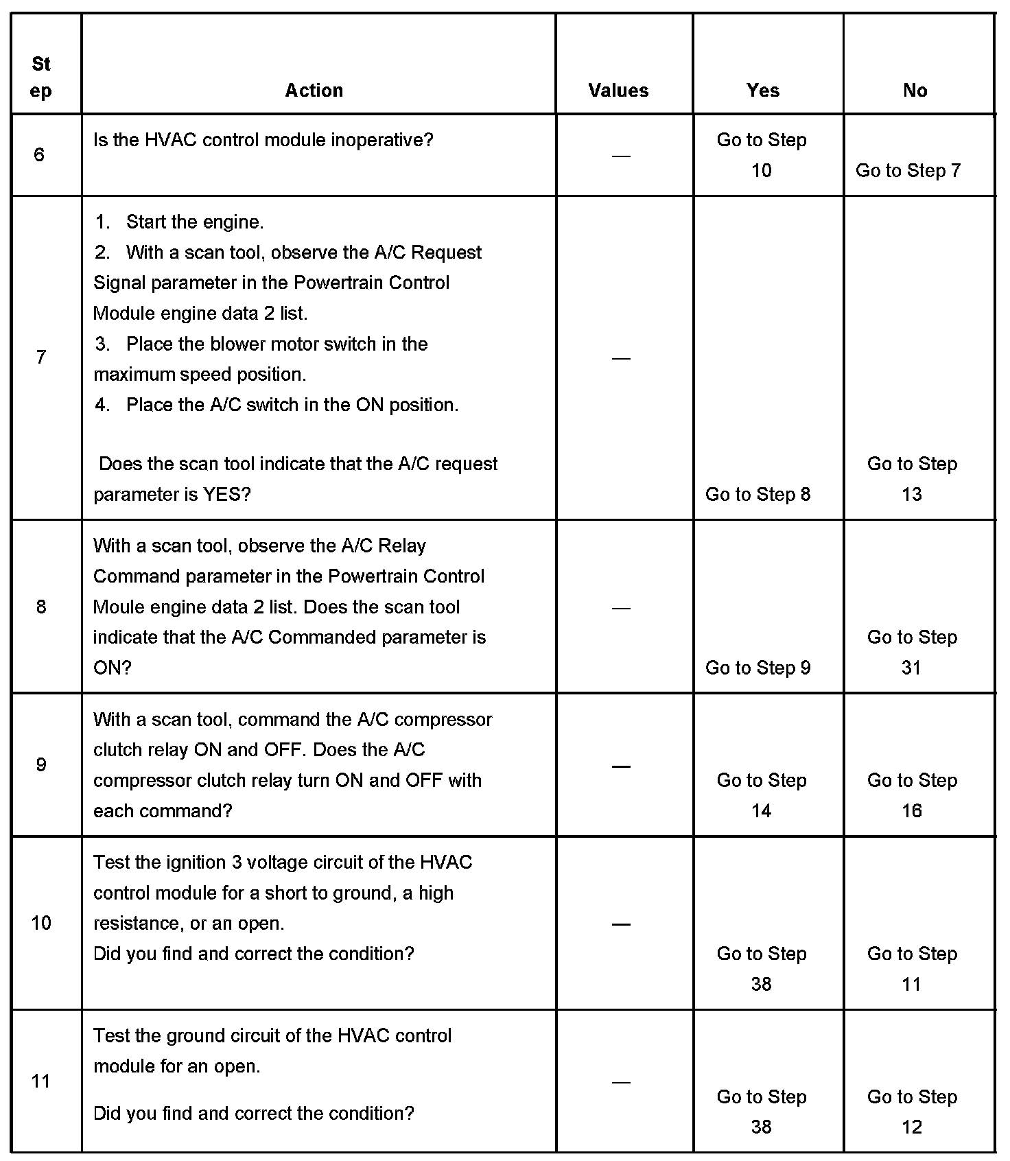 6. The HVAC control module is inoperative when the HVAC control unit does not respond to any operator control request to enable the A/C compressor. The blower motor may still operate independent of the A/C controls.