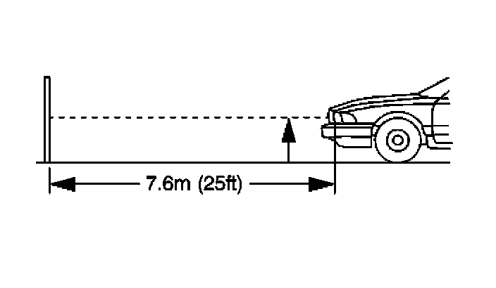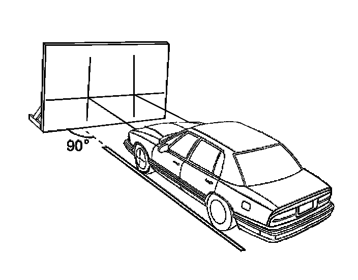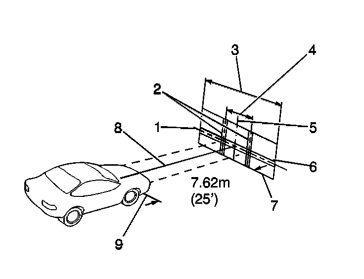 - After the aiming screen has been set up in a permanent location, paint a reference line on the floor directly under the lens of the lamps to indicate the proper location of the headlamps when they are being aimed: