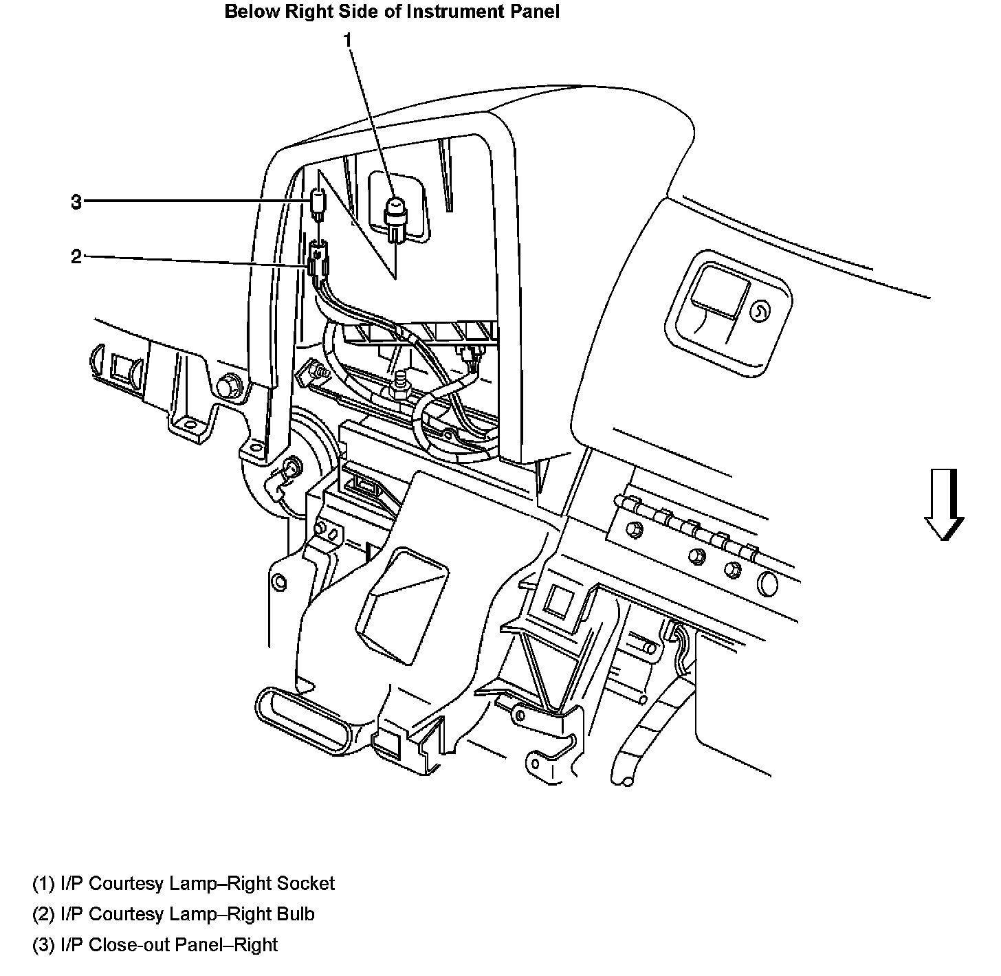 Below Right Side of Instrument Panel