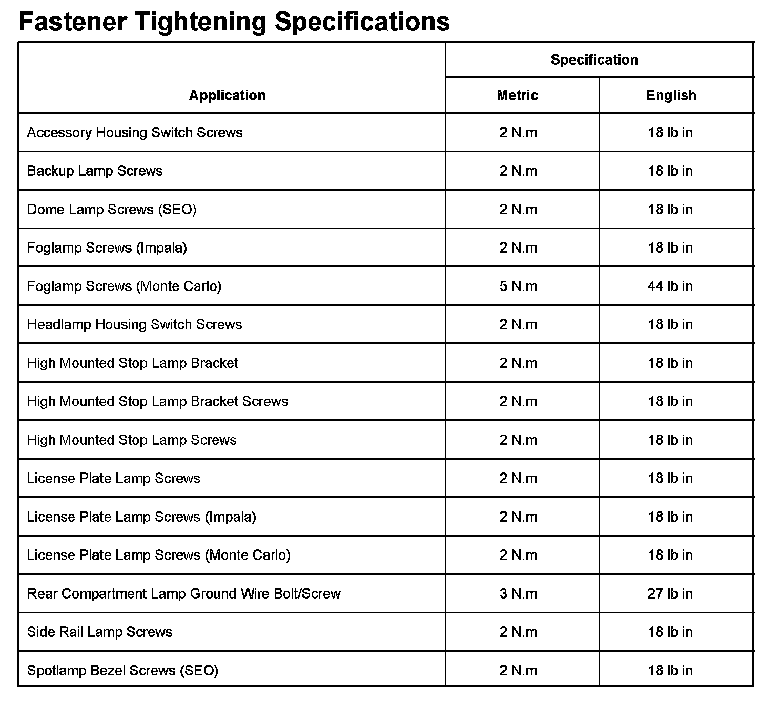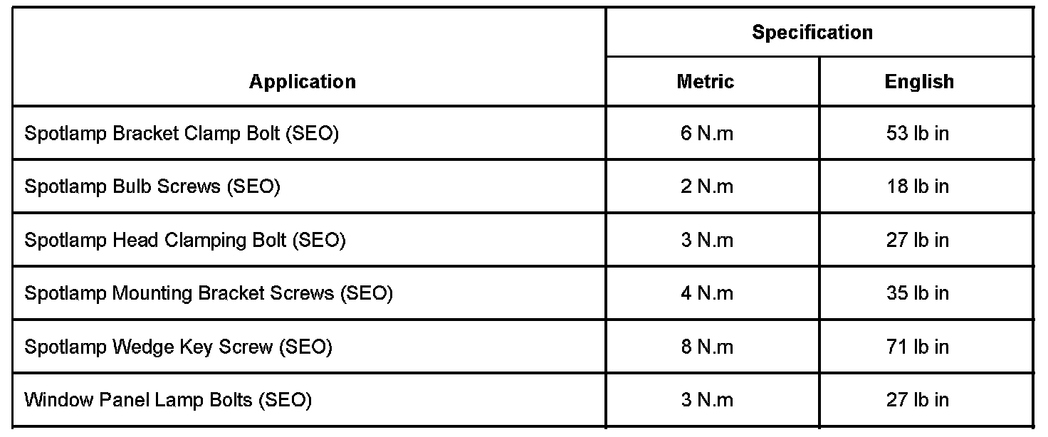 Lighting and Horns: Specifications
