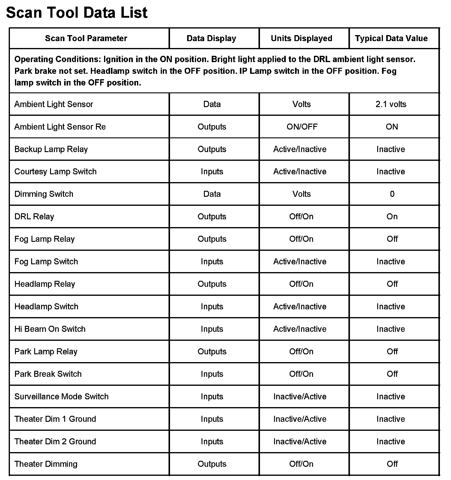 Scan Tool Data List:
