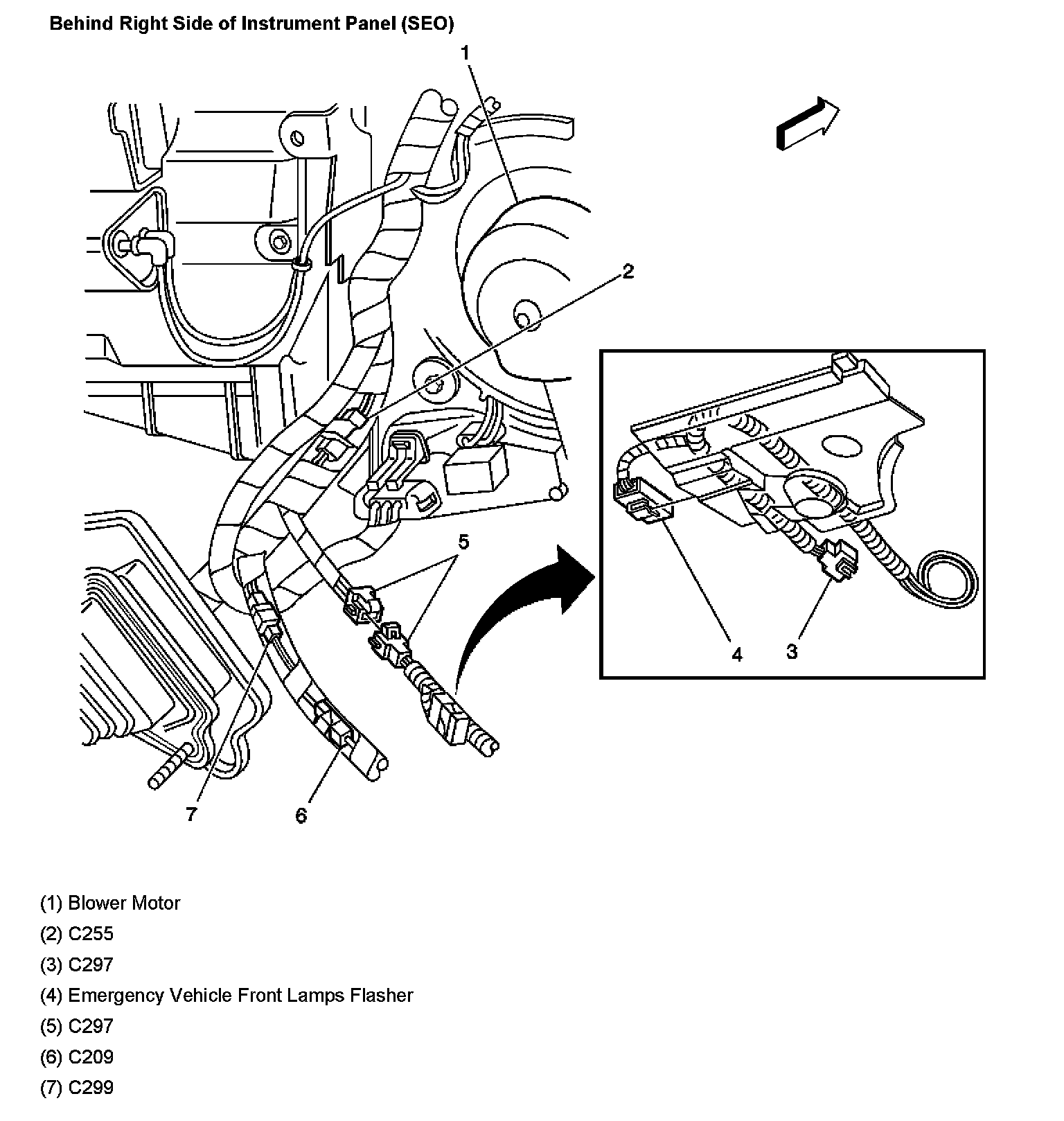 Behind Right Side of Instrument Panel (Seo)