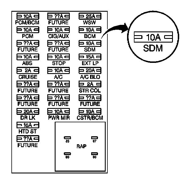 IMPORTANT: With the SIR Fuse removed and the ignition ON, the AIR BAG indicator illuminates. This is normal operation, and does not indicate an SIR system malfunction.