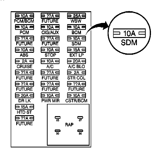 IMPORTANT: With the SIR Fuse removed and the ignition ON, the AIR BAG indicator illuminates. This is normal operation, and does not indicate an SIR system malfunction.