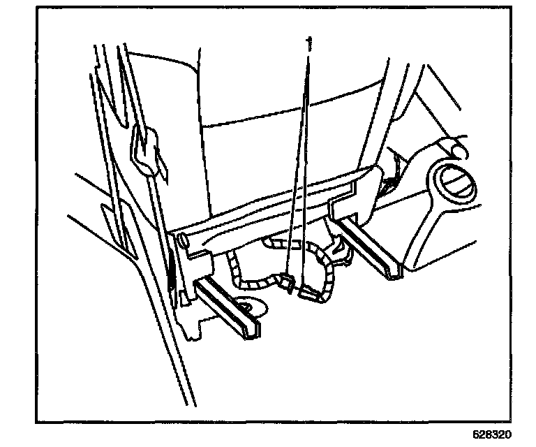 6. Remove the connector position assurance (CPA) from the side impact module - LF connector (1) located under the driver seat.