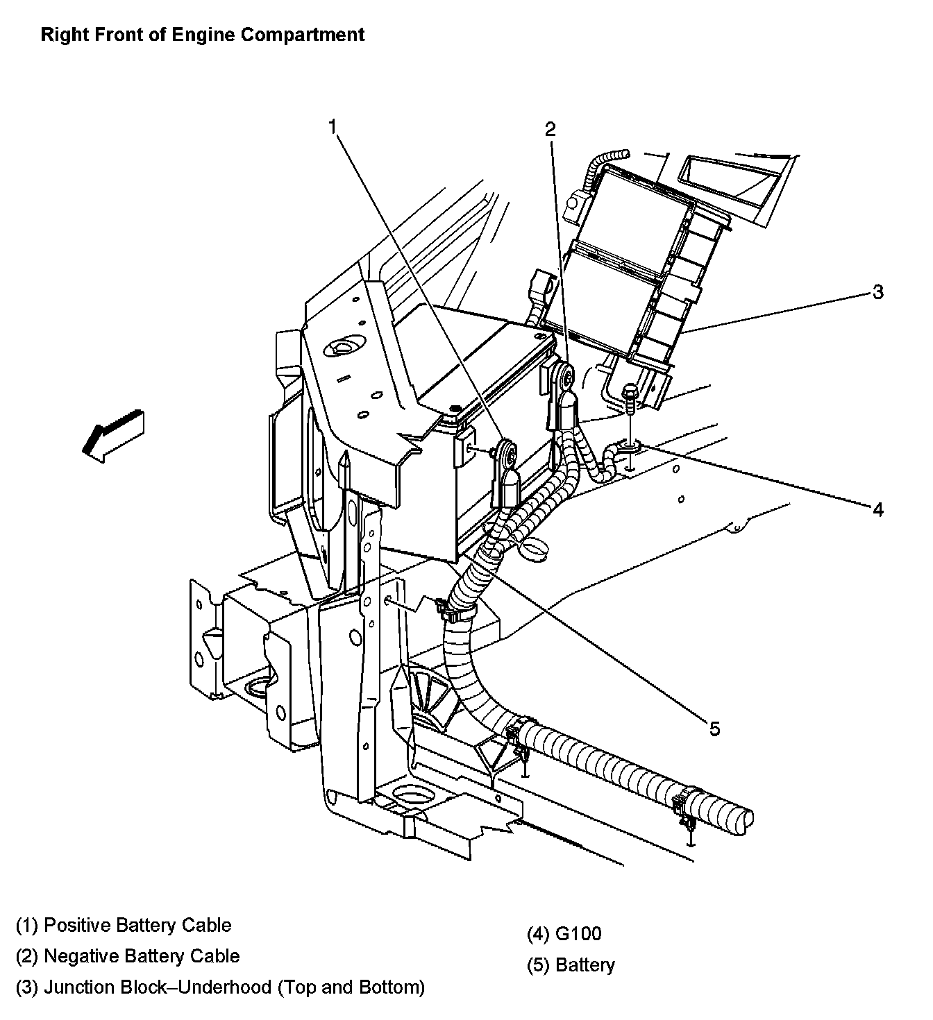 Right Front Of Engine Compartment: