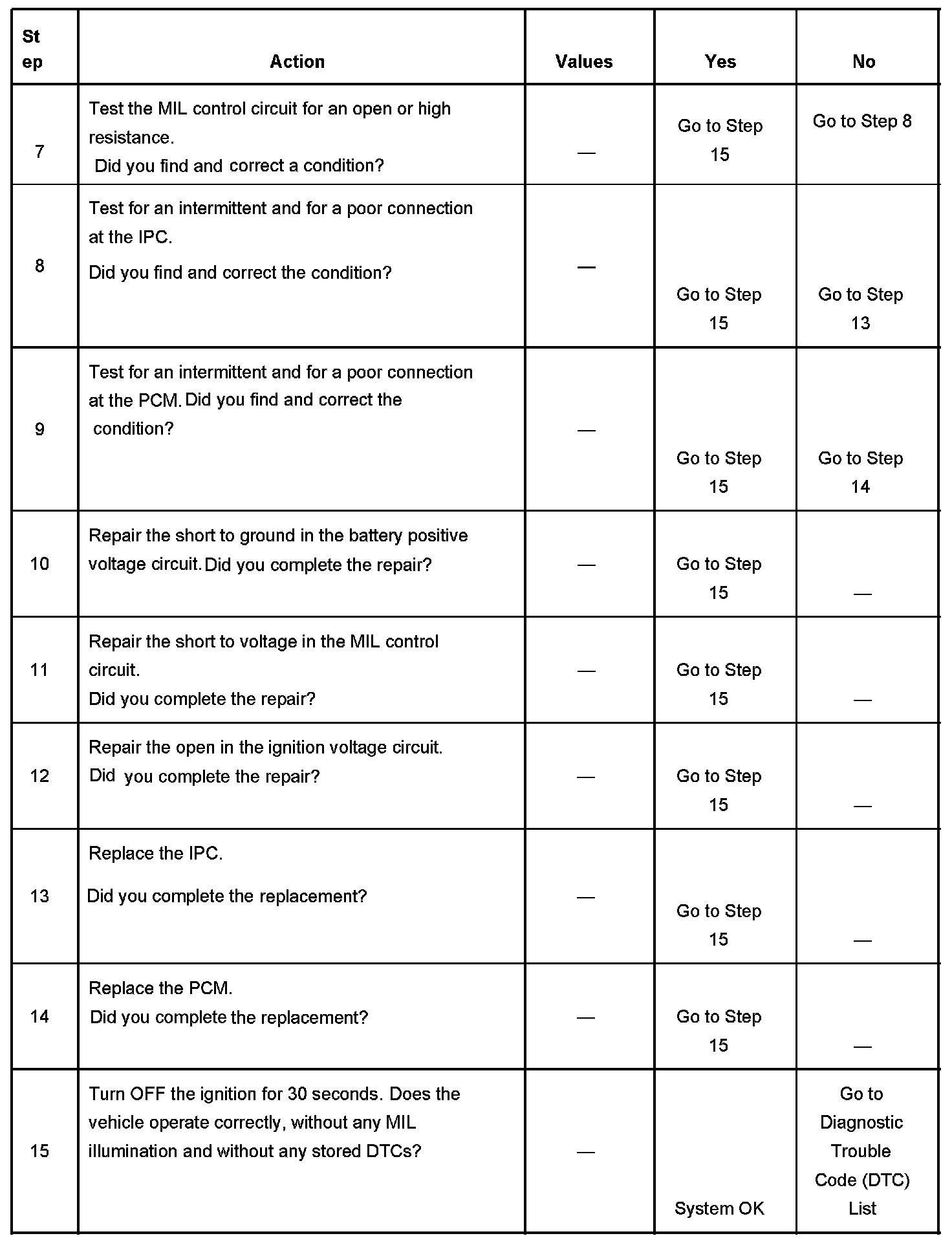 4. This step tests for a short to voltage on the MIL control circuit. With the fuse removed there should be no voltage on the MIL control circuit.