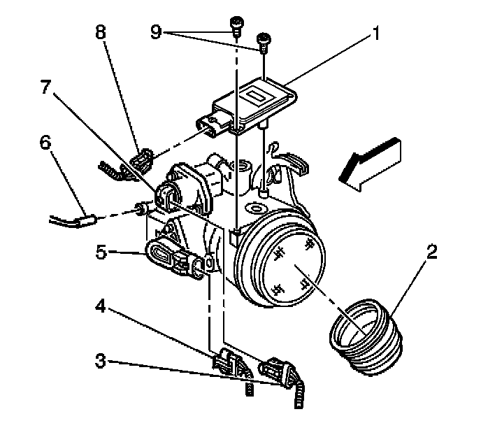 3. Remove the MAF sensor screws (9).