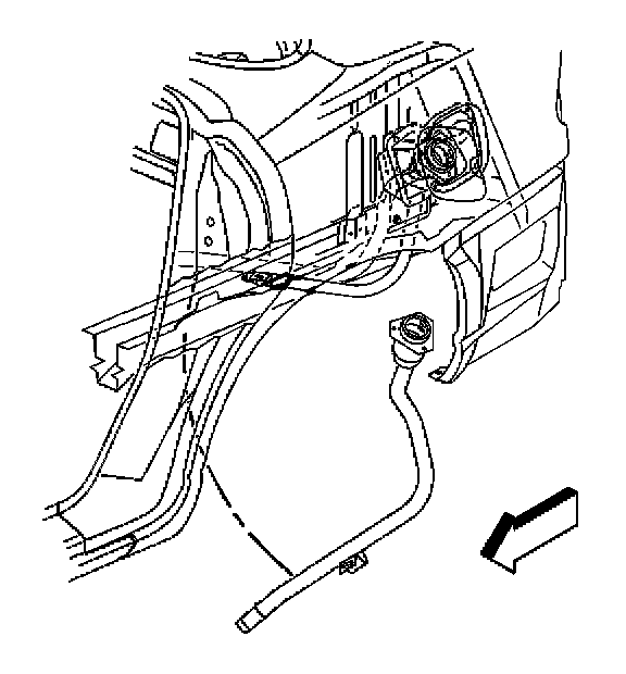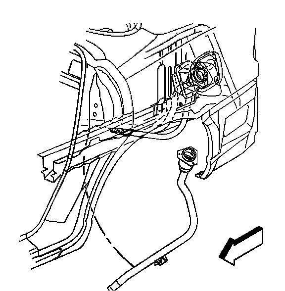 3. Install the filler hose (4) to the fuel fill pipe (2).Inspect and ensure the filler hose (4) is fully seated on the fuel tank port and the fuel filler pipe (2).