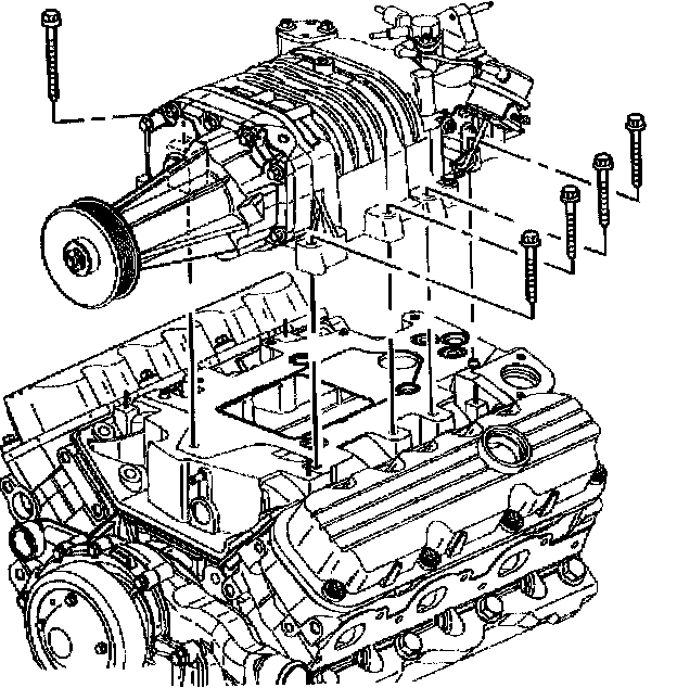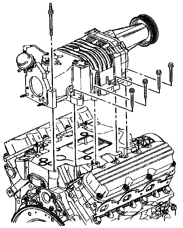 - Tighten the supercharger bolts starting from the center and working to the outside of the supercharger to 23 Nm (17 ft. lbs.).