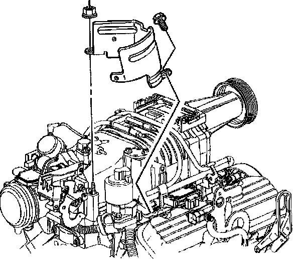 2. Remove the fuel injector sight shield. Fuel Injector Sight Shield Replacement
