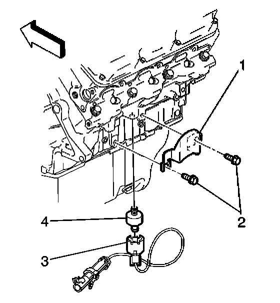 4. Disconnect the knock sensor electrical connector (3) from the knock sensor.