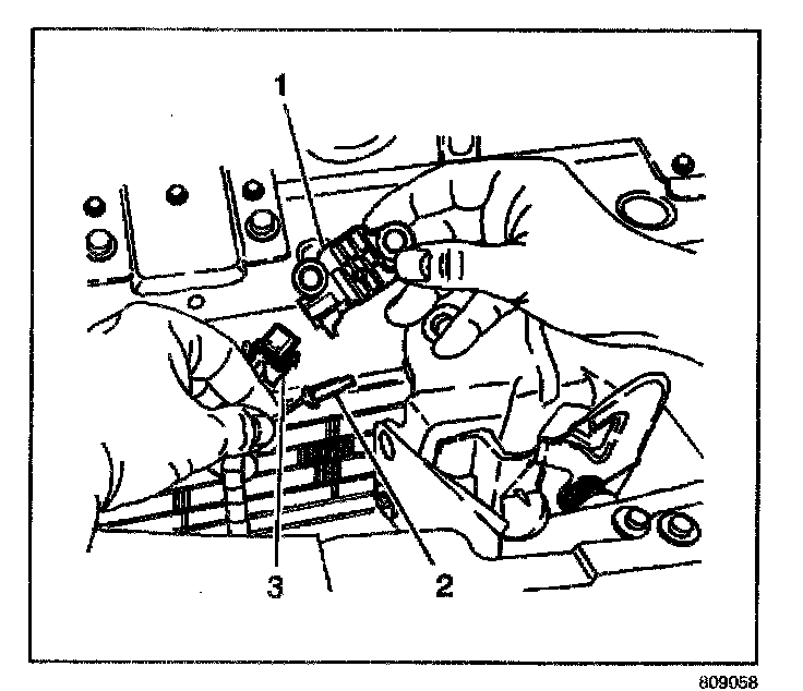 2. Connect the harness connector (3) to the sensor (1).