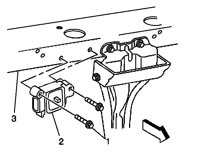 6. Remove the sensor (2) from the upper radiator core support (3).