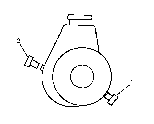 2. Install the plugs (1,2) supplied with the J 43485 into the pressure and return port.