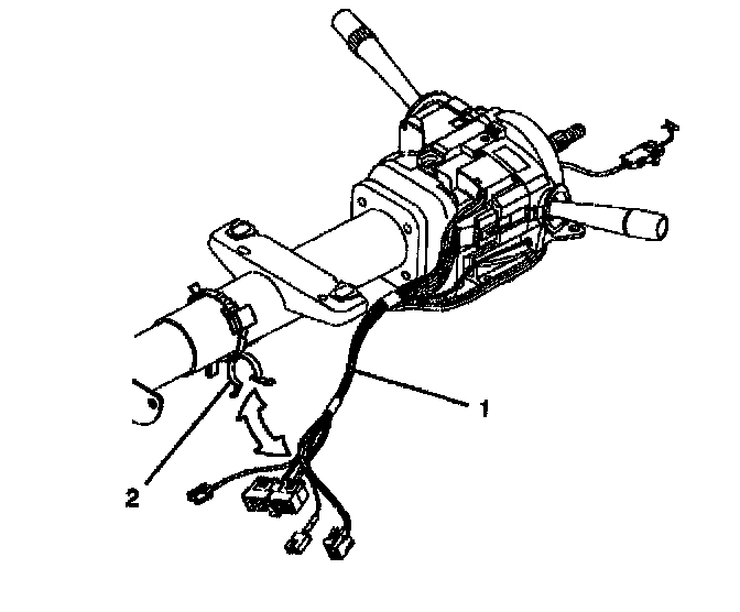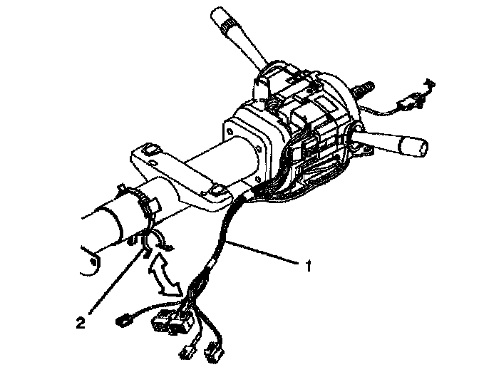 1. Install the turn signal and multifunction switch assembly (2) onto the steering column tilt head assembly.