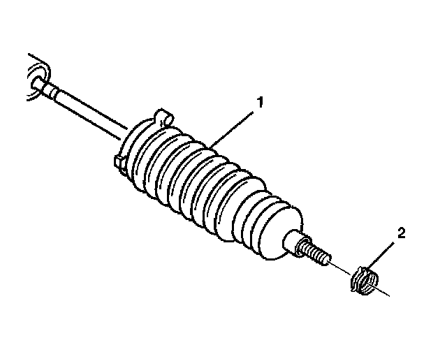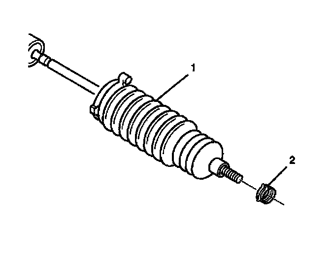1. Install the new boot clamp (2) onto the rack and pinion boot (1).