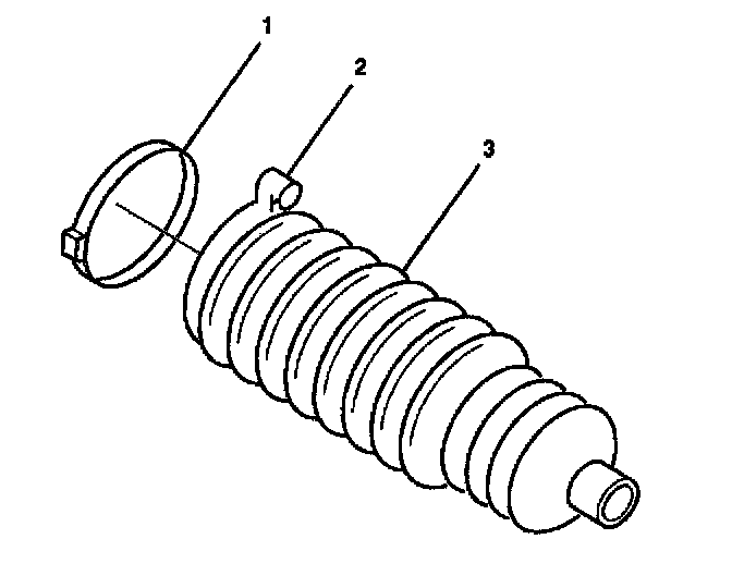 Important: The rack and pinion boot (3) must not be twisted, puckered or out of shape in any way. If the rack and pinion boot (3) is not shaped properly, adjust the rack and pinion boot (3) by hand before installing the boot clamp.