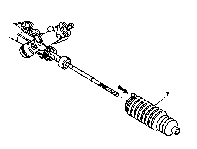 6. Remove the rack and pinion boot (1) from the rack and pinion gear assembly.