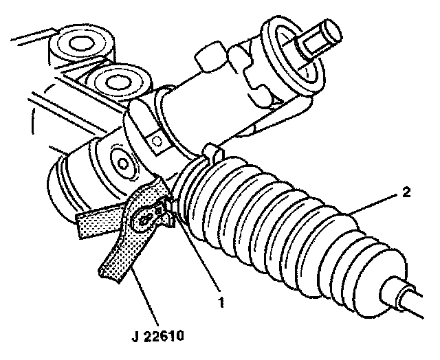 5. Install the boot clamp (1) on the rack and pinion boot (2) with J 22610.
