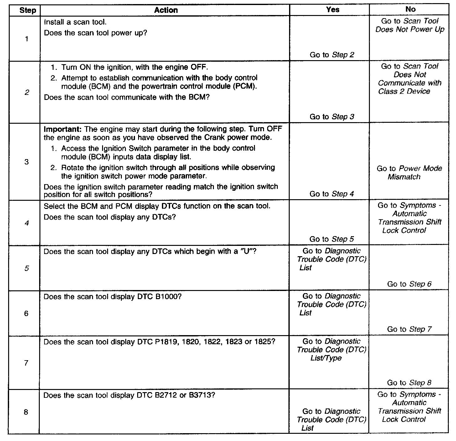2. Lack of communication may be due to a partial malfunction of the class 2 serial data circuit or due to a total malfunction of the class 2 serial data circuit. The specified procedure will determine the particular condition.