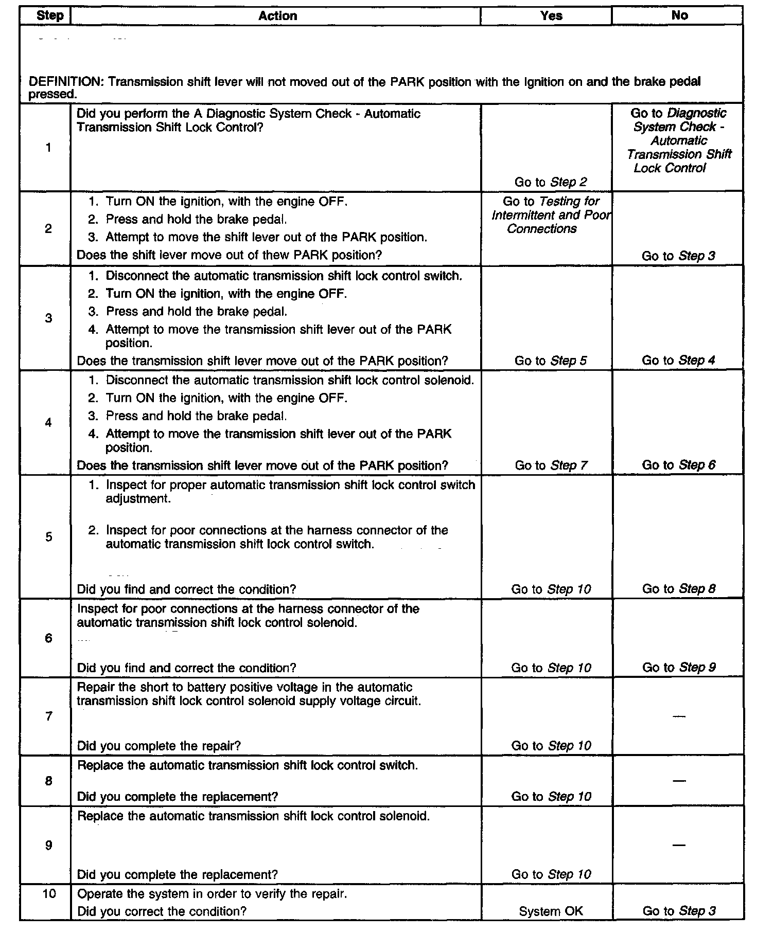 Shift Lever Does Not Move With Brake Pedal Depressed