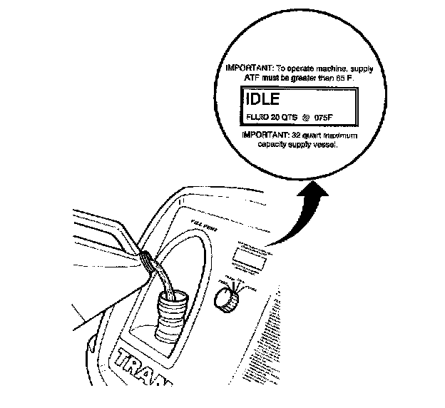 5. Fill the supply tank with Dexron-III/Mercon, or equivalent, through the fill port.