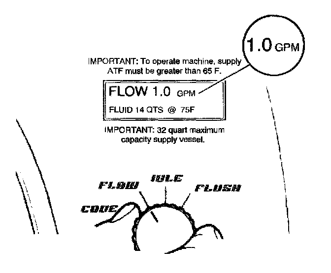 1. Turn the main function switch to the FLOW position and allow the oil to flow for 15 seconds. Observe and note the flow rate; this is the TESTED flow rate.