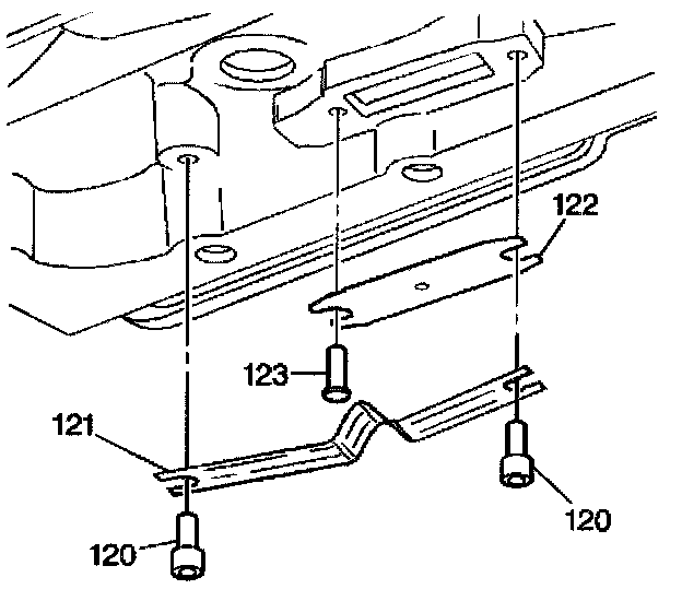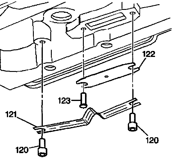 6. Install the thermo element (121) between the two pins (120). The V in the thermo element (121) must contact the thermo element plate (122).